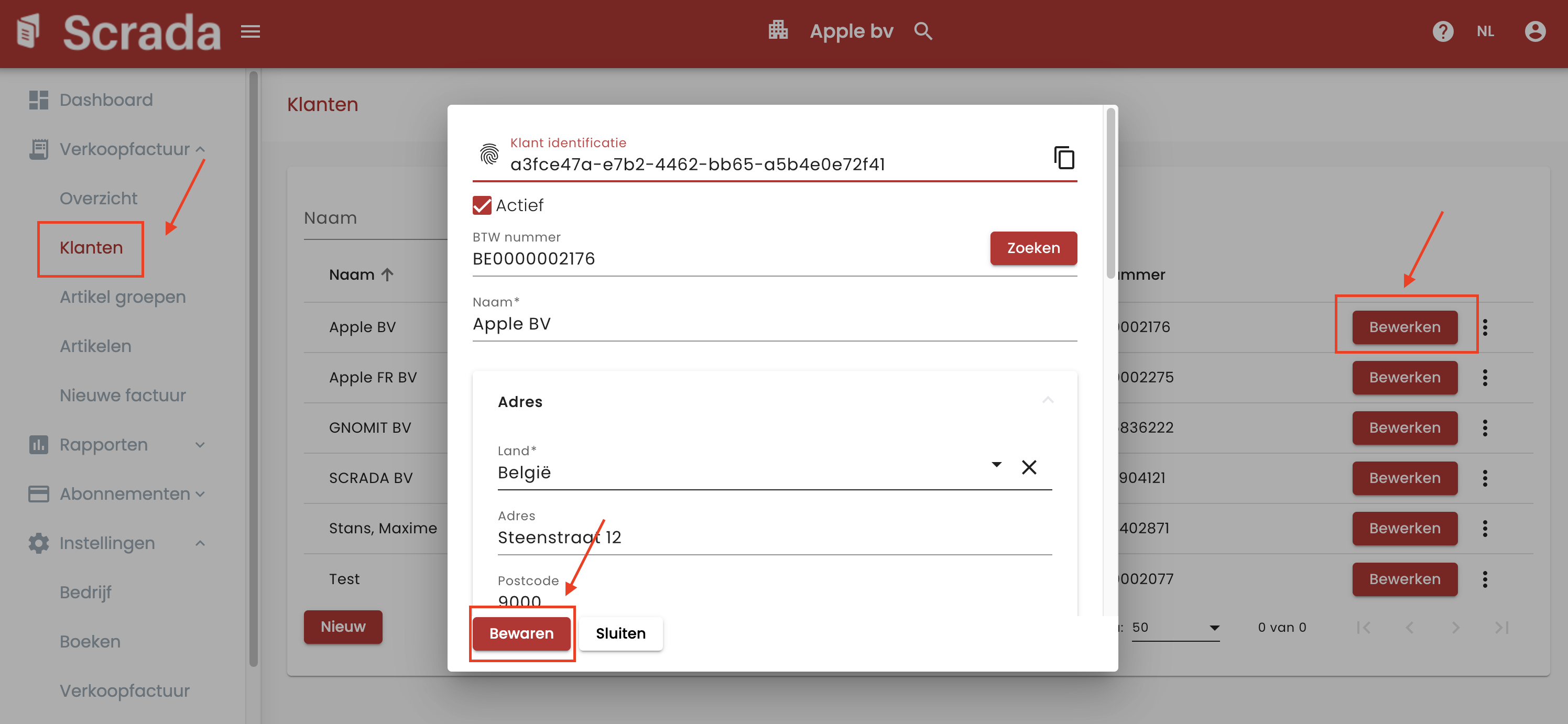 - Klik naast de klant die u wilt bewerken op de knop 'Bewerken'