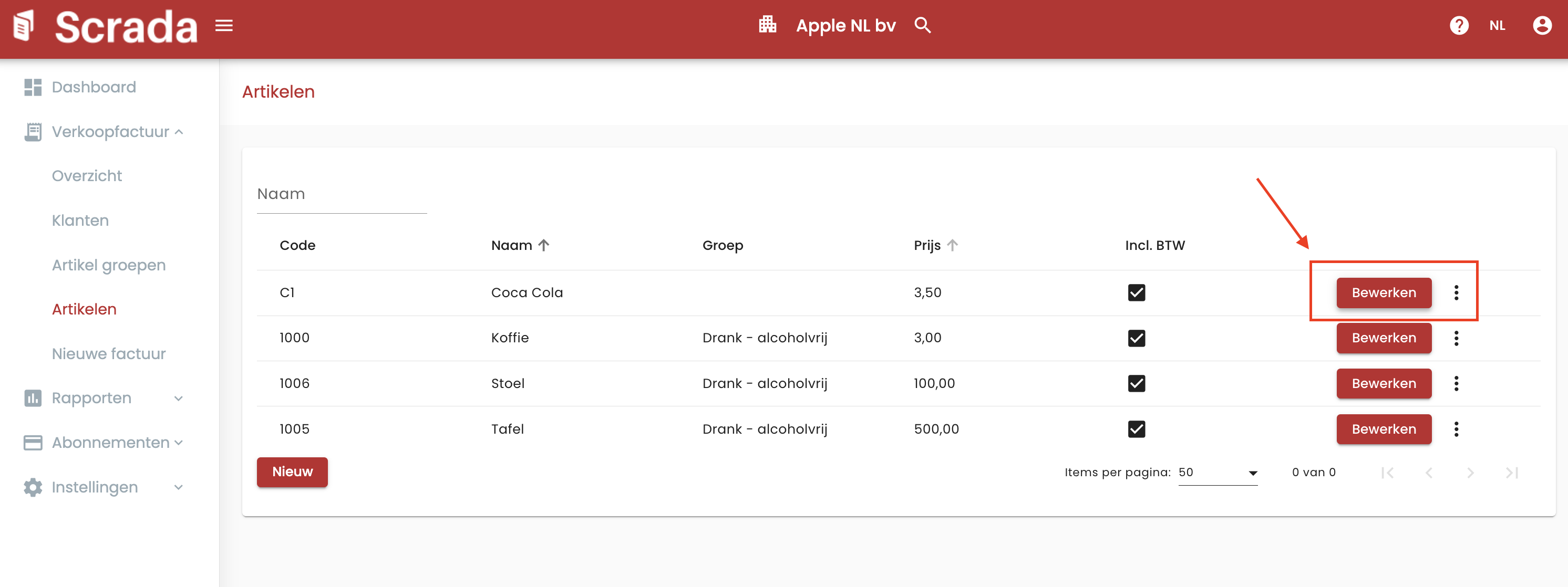 - Klik op de knop 'Bewerken' langs het artikel dat u wenst aan te passen
