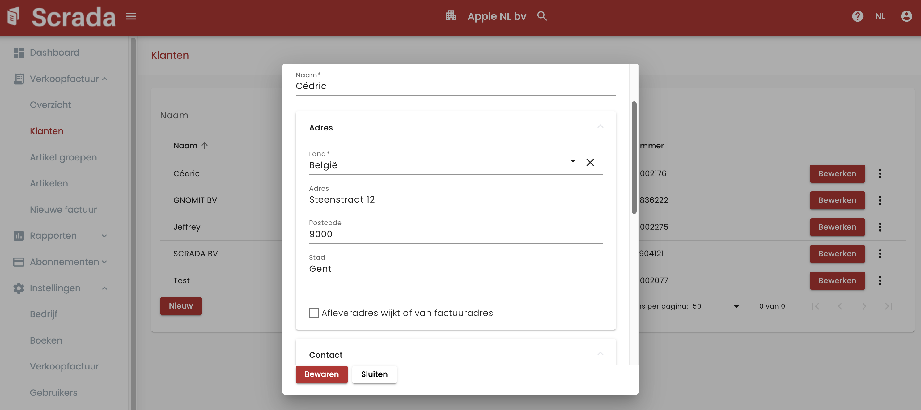 - Klik op de knop 'Bewerken' naast de klant waarvan u het factuuradres wil aanpassen